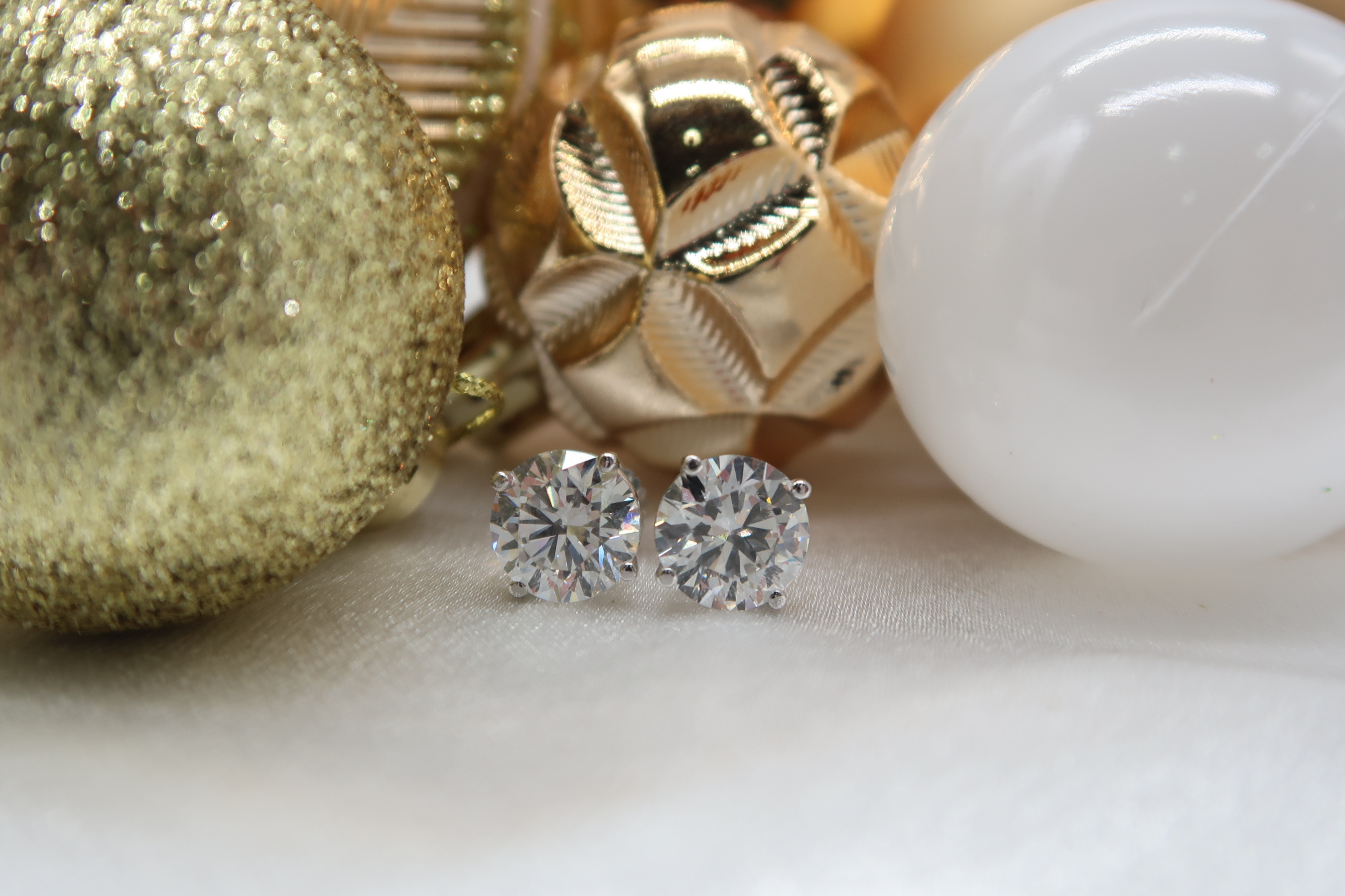 Timeless sophistication meets dazzling sparkle handcrafted in 14K white or yellow gold, featuring round brilliant lab-diamonds in F color, VS1 clarity with secure push-back closures.
