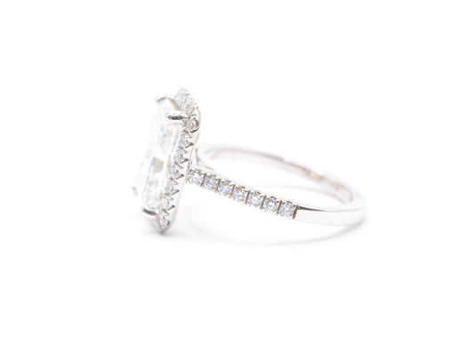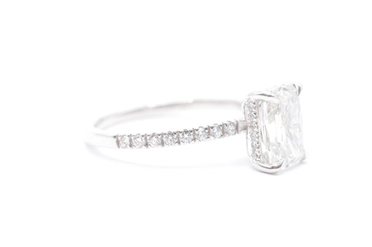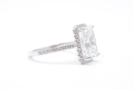2.5ct lab grown radiant center f color vs1 14k white gold diamond pave setting accented underhalo