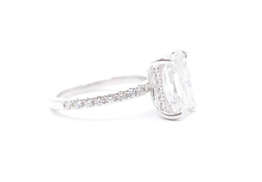 2ct radiant lab grown diamond center f color vs1 14k white gold diamond pave setting with accented underhalo 2.5cttw