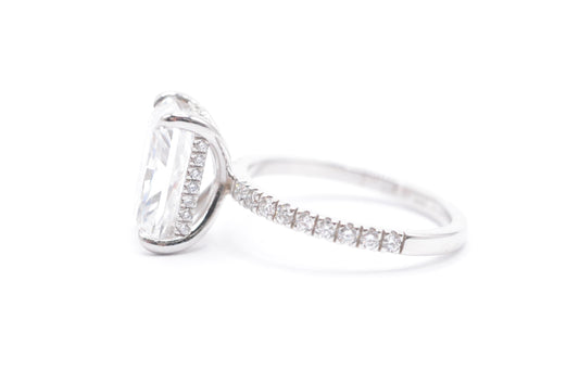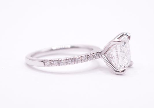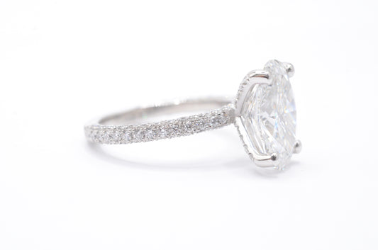 3ct radiant lab diamond center F color VS1 igi certified diamond pave mounting with accented under halo