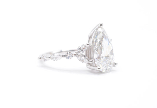 3ct pear lab diamond center IGI certified f color VS1 custom marquis/round split diamond setting 14k white gold
