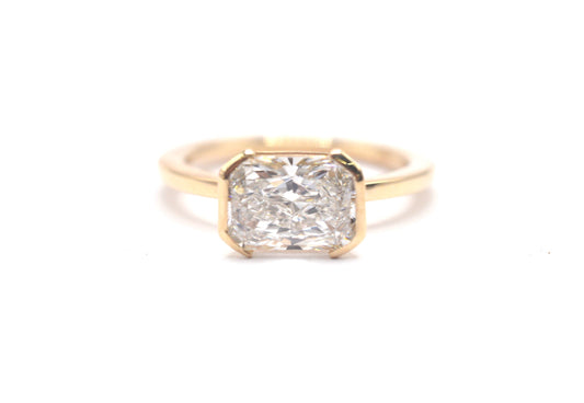 2ct radiant lab diamond F color VS1 east to west bezel setting 14k yellow gold