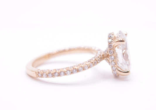 2ct oval lab diamond F color VS1 14k yellow gold solitaire with hidden halo