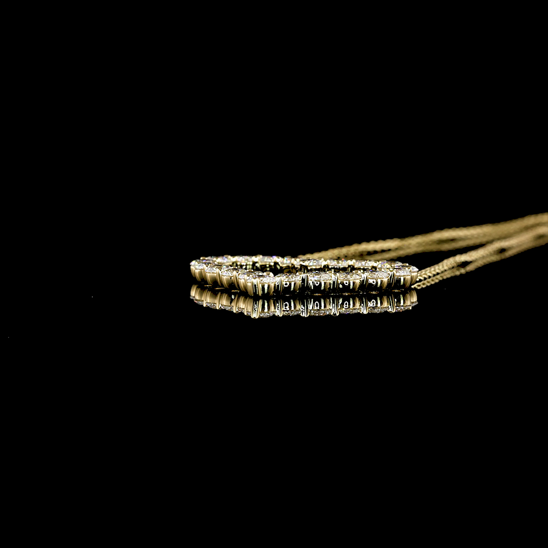 This timeless Symbol Pendant is meticulously crafted in 14k Yellow Gold, featuring 1.94 CTTW of Round diamonds (F color, VS1 clarity) that dazzle with every movement. A perfect piece to enhance any jewelry collection.