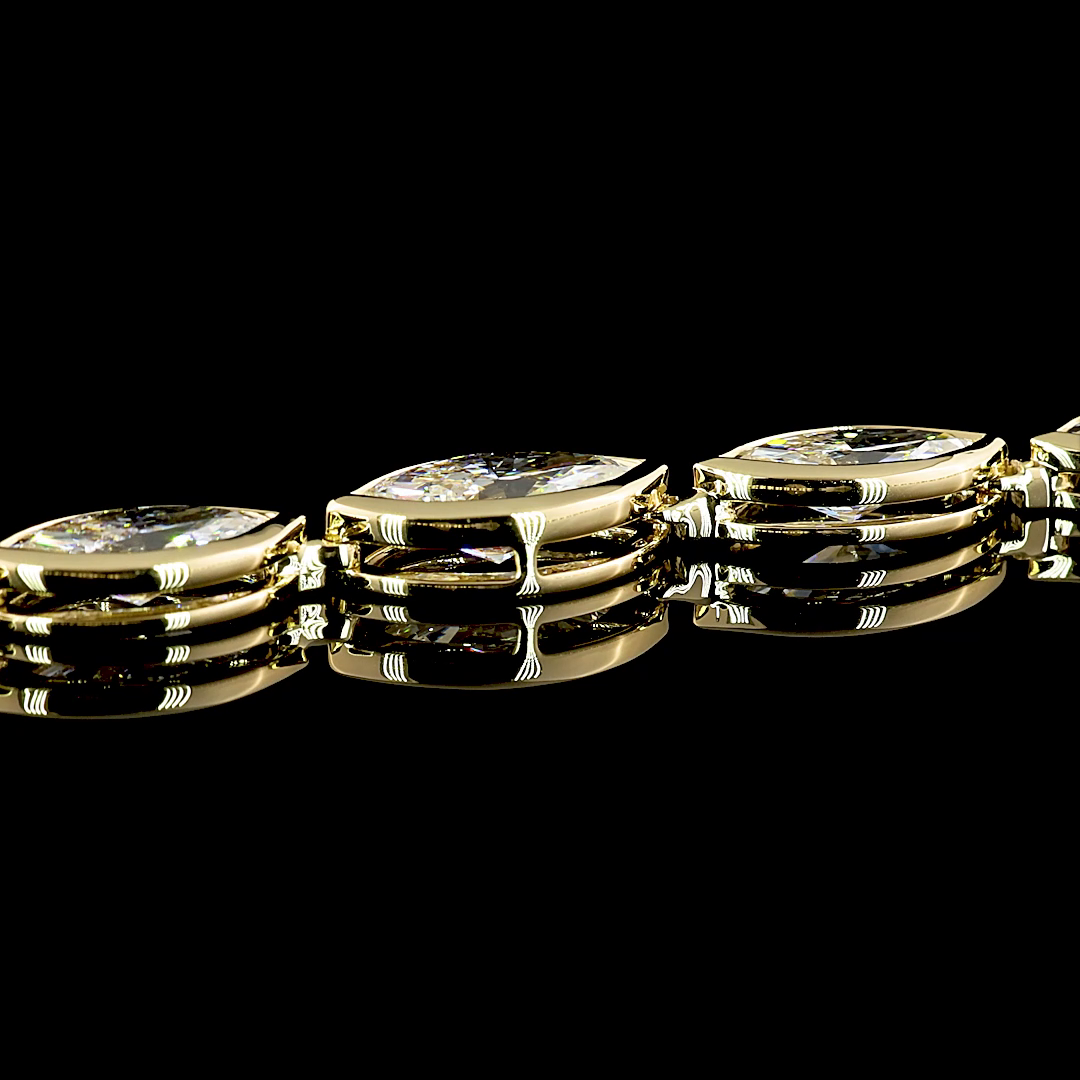 This timeless Riviera Necklace is meticulously crafted in 14k Yellow Gold, featuring 10.08 CTTW of Marquise diamonds (F color, VS1 clarity) that dazzle with every movement. A perfect piece to enhance any jewelry collection.