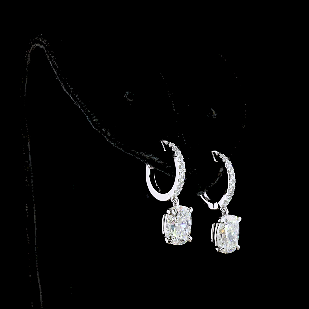3.26 CTTW Cushion Brilliant Lab Diamond Hanging Earring (F Color and VS1 Clarity)