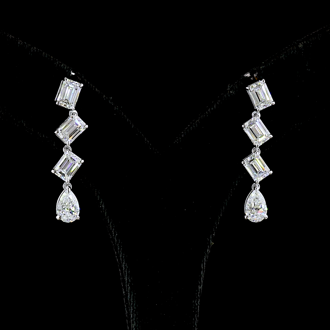 5.12 CTTW Emerald Lab Diamond Hanging Earring (E Color and VS2 Clarity)